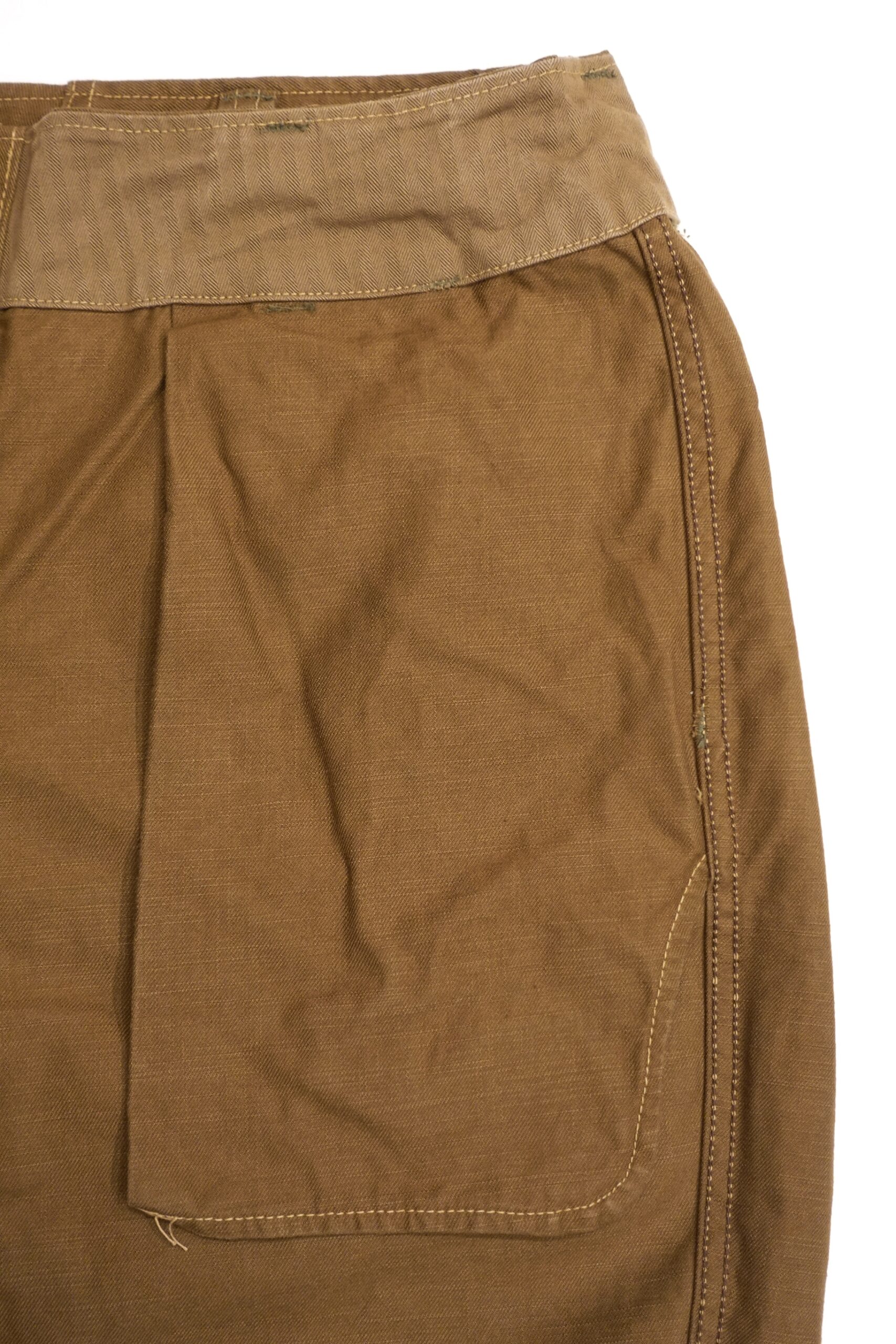 特徴はウエスト帯に有り、ベルトループを含め厚めの帯裏のパーツを使い帯を深めの仕様