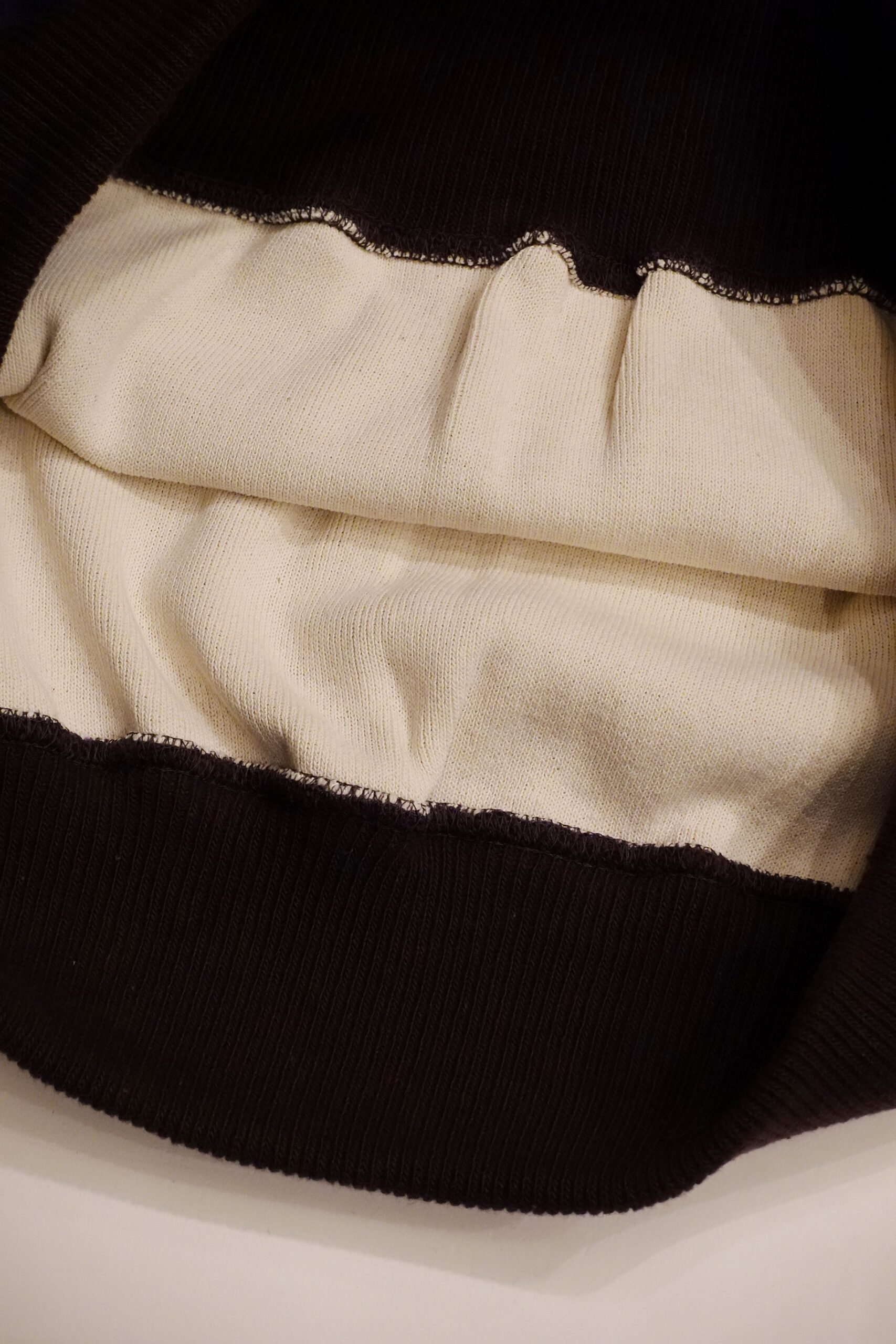 裏生地のリブコットンは伸縮性が高くやや薄生地のビンテージスタイル