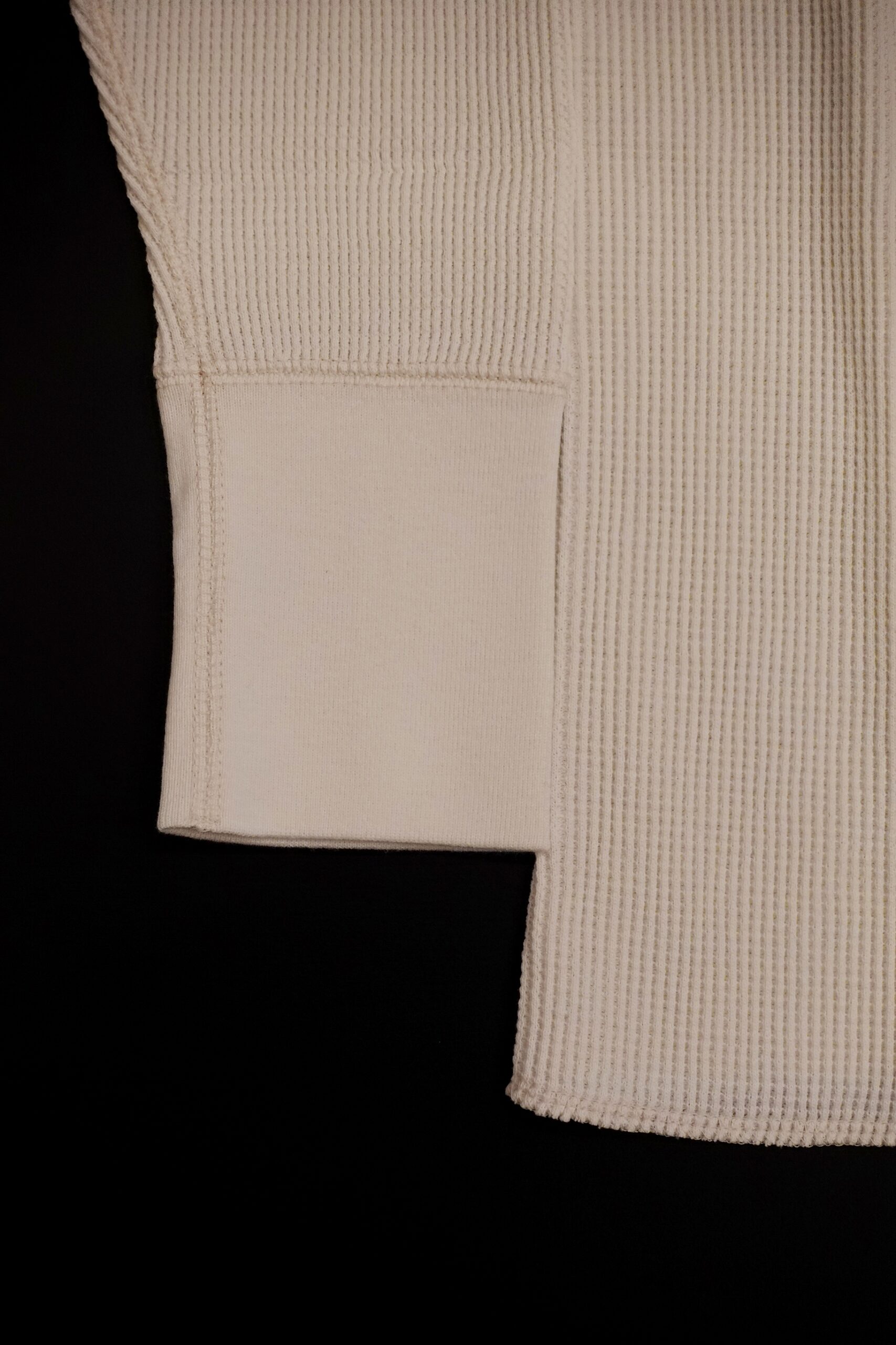 ワッフル状の網目のサーマル生地は伸縮性と耐久性がございます。