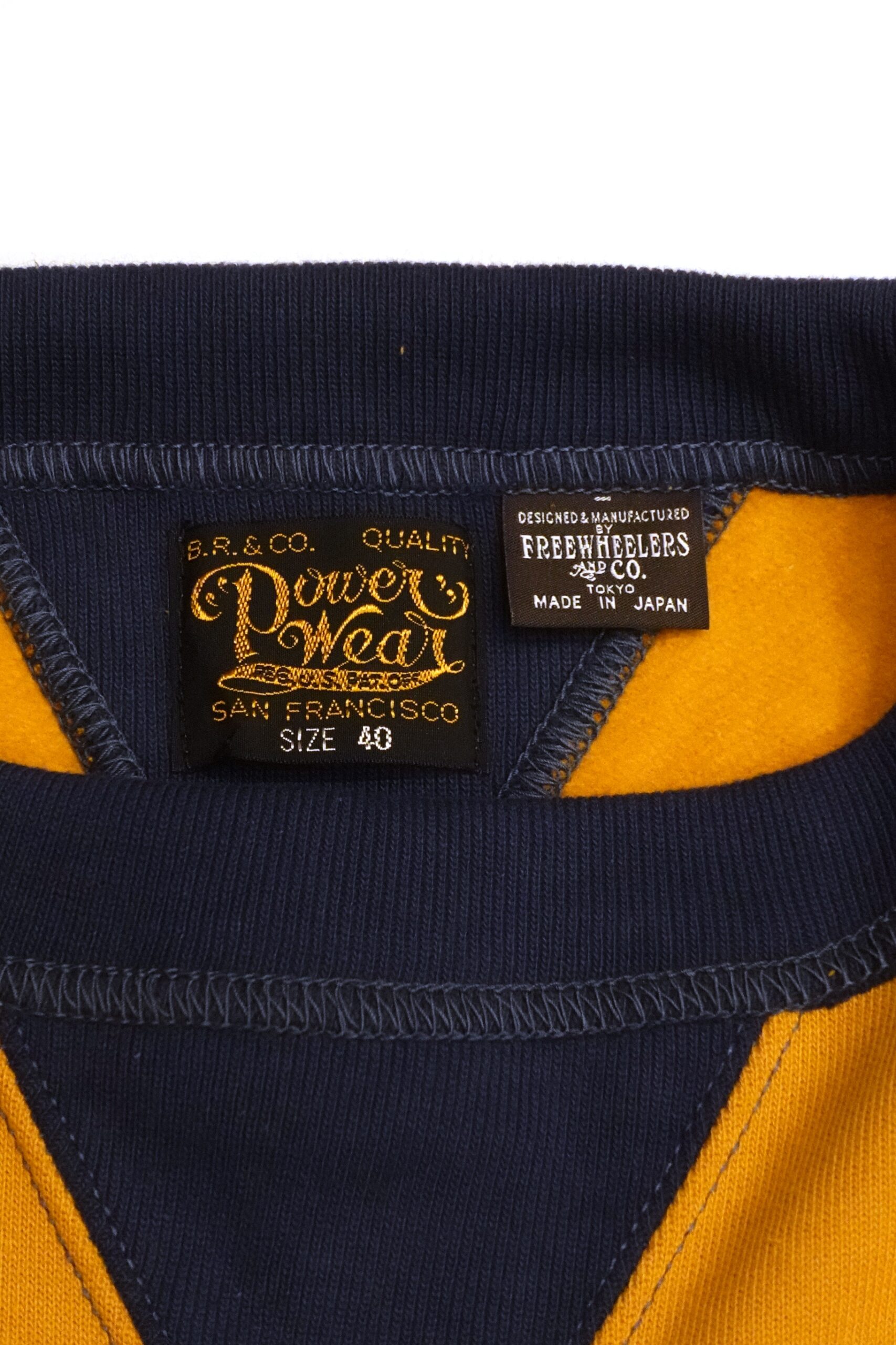 FREEWHEELERS(フリーホイーラーズ) "Devil Dog" DOUBLE V SWEAT SHIRT #2534003 / OLD GOLD×DEEP BLUEBERRY