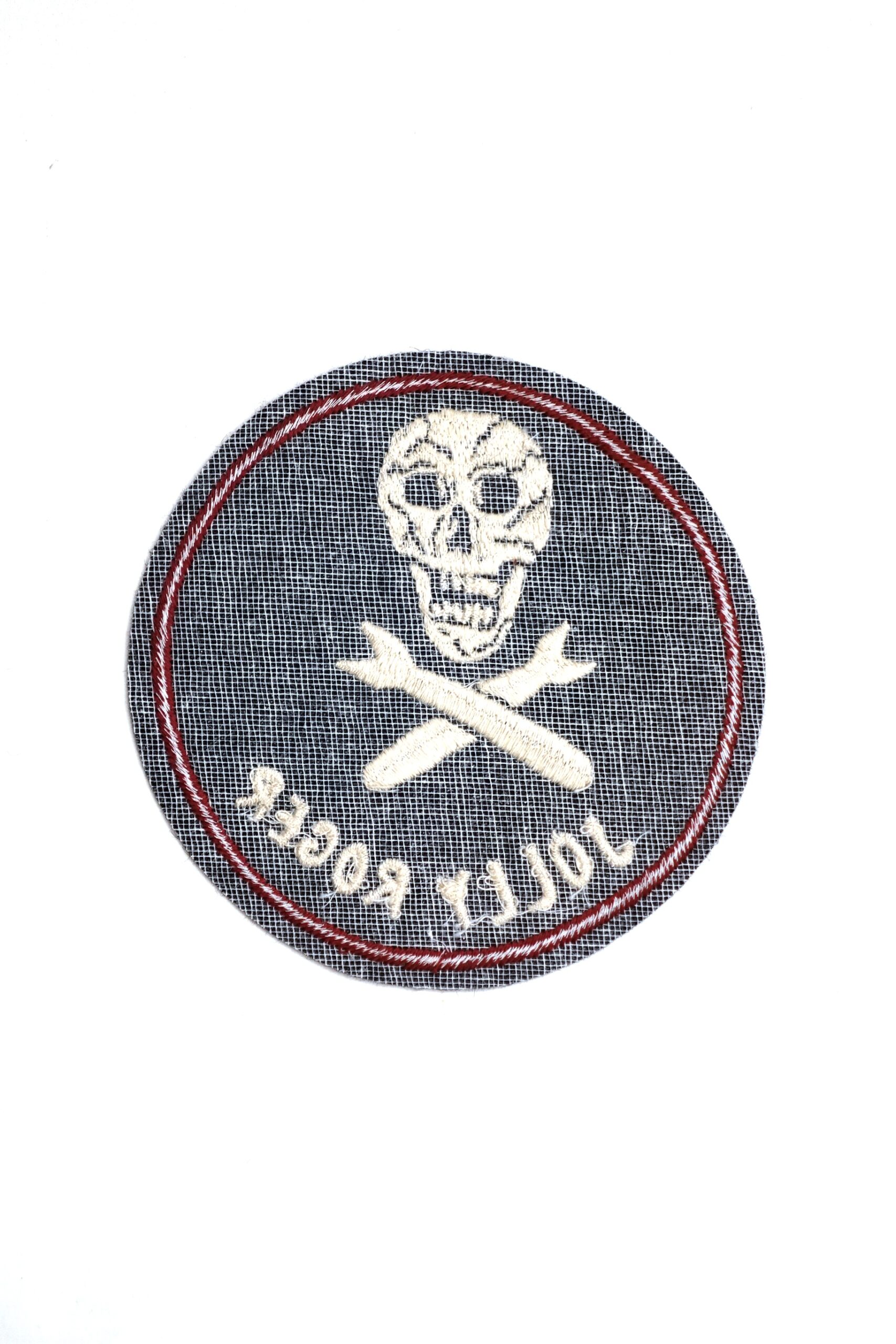 ワッペンはブラックベースのフェルトに綿刺繍によりジョリーロジャー