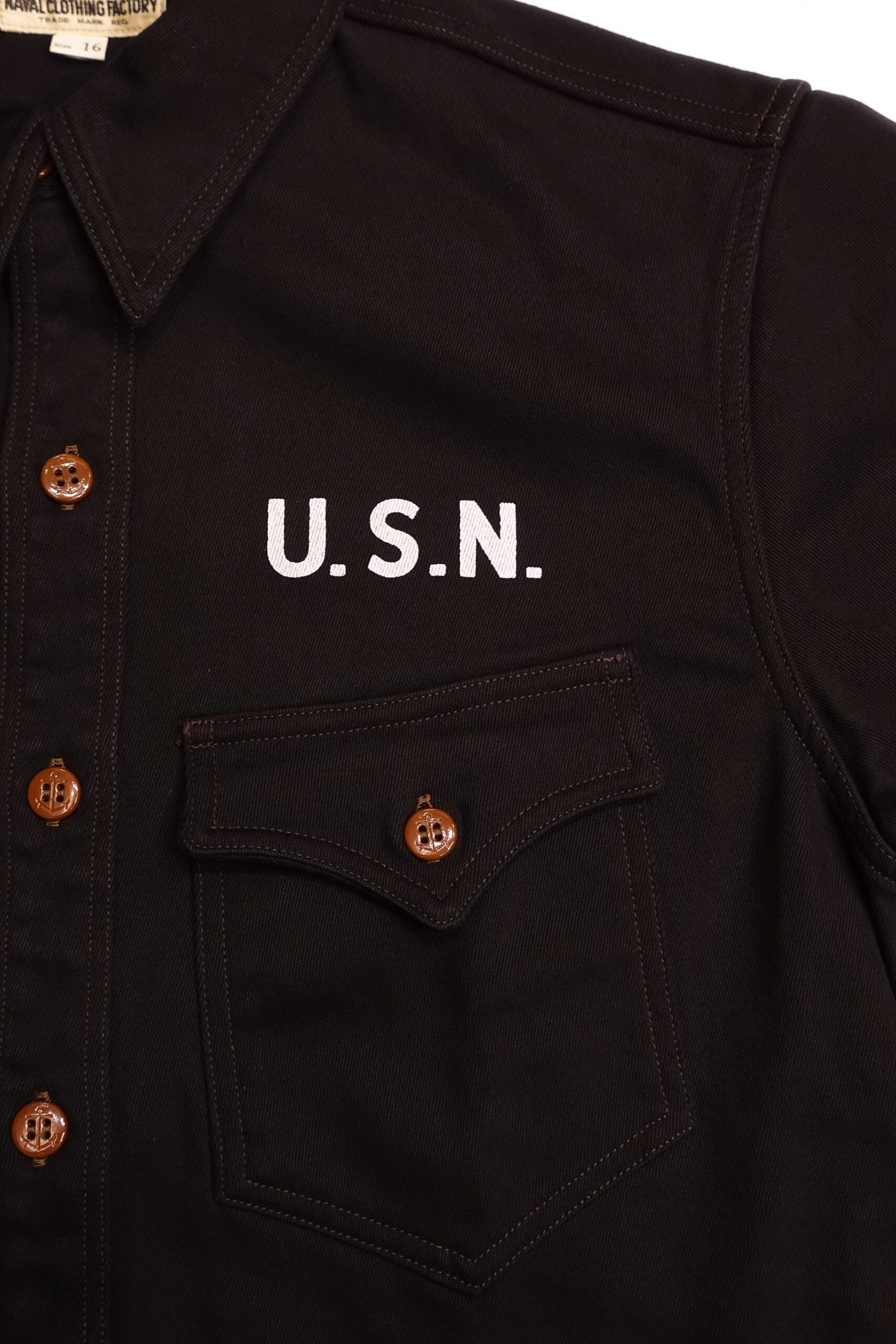 フリント左ポケット上にはU.S.Nを表す書体がプリント