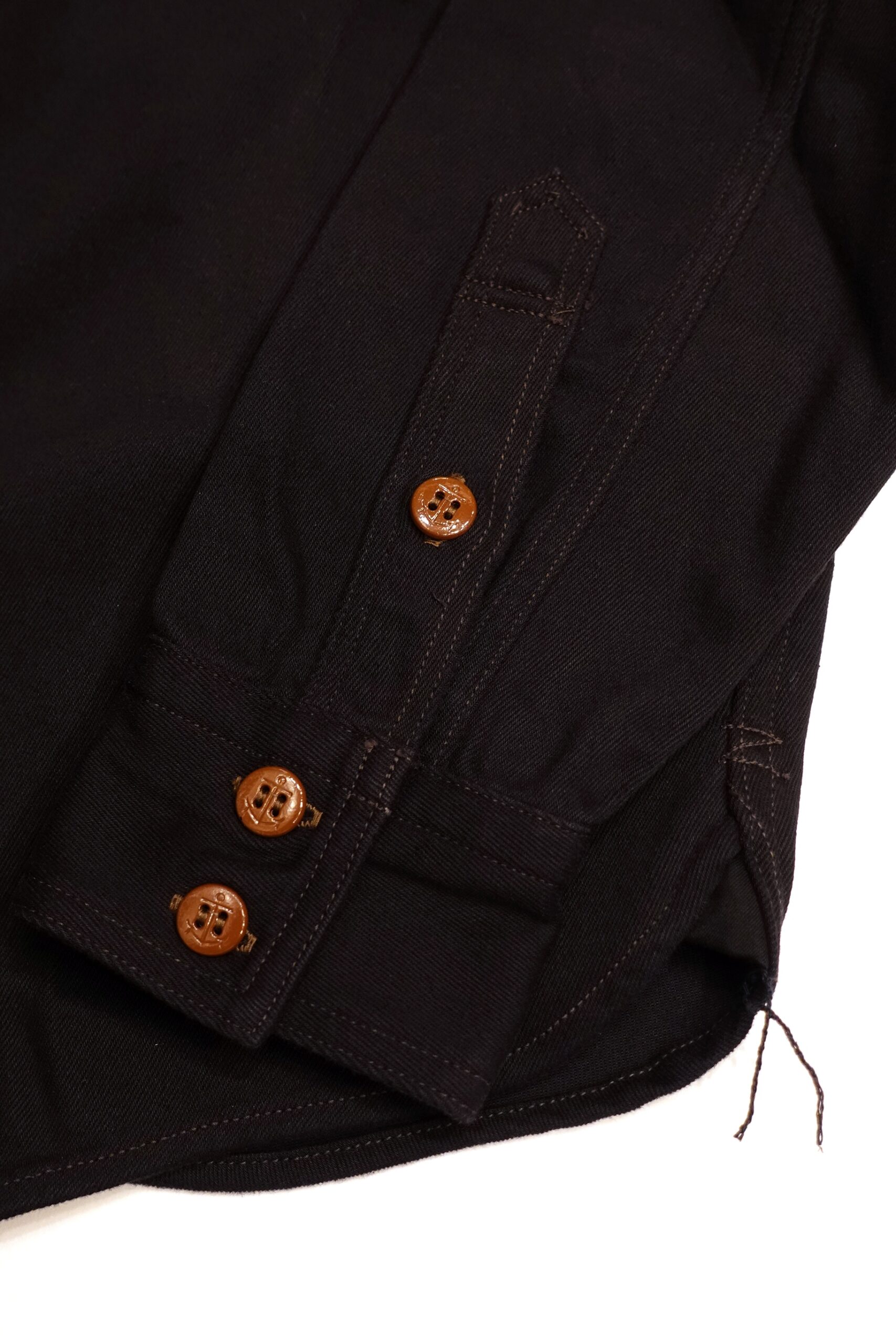 袖はカフスボタンが2つ付き長めの剣ボロの中心にもボタンが付きます。