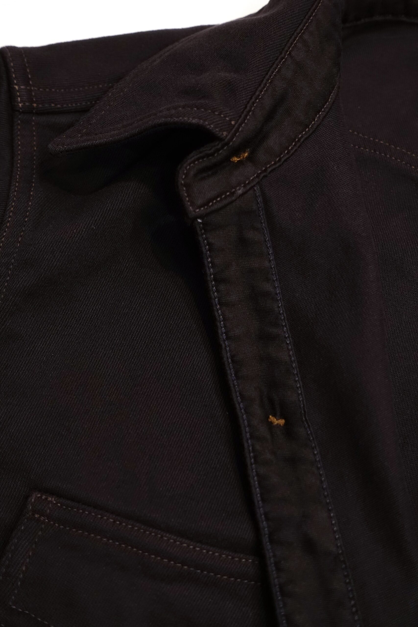 2本針のアウトシームの縫製始末はカラカンによる処理、古い年代の踏襲した仕様