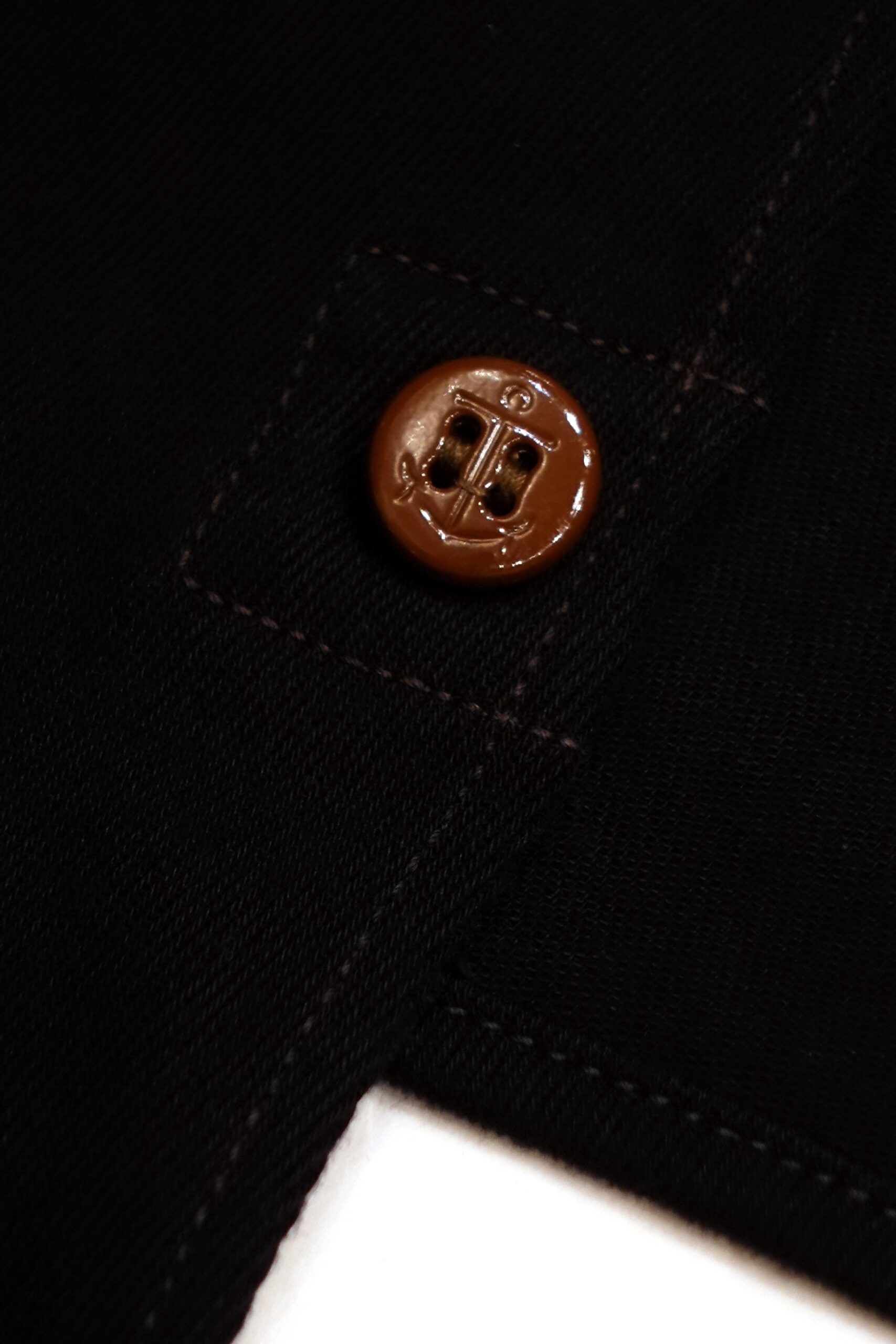 付属の釦はキャラメル色のアーカーマークが入る16㎜の尿素ボタンを採用