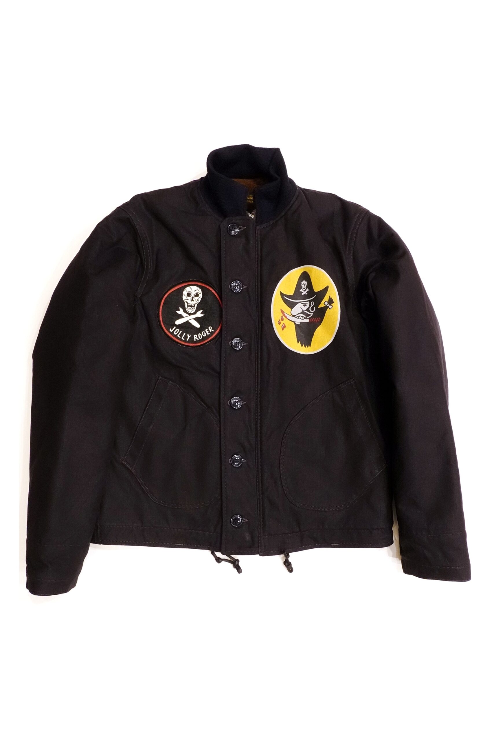 FREEWHEELERS(フリーホイーラーズ) “KNUCKLE BONES” on “AAF 90thBG 400thBSQ” CIVILIAN DECK JACKET #2531004 / DARK NAVY