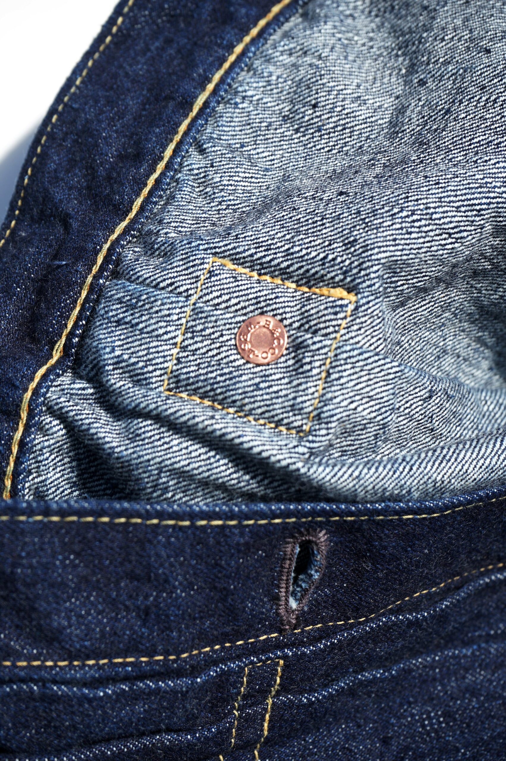 当時の雰囲気を再現した14ozは色落ちと肌触りが特徴になり、毛羽立ちある赤耳付きセルビッチデニム