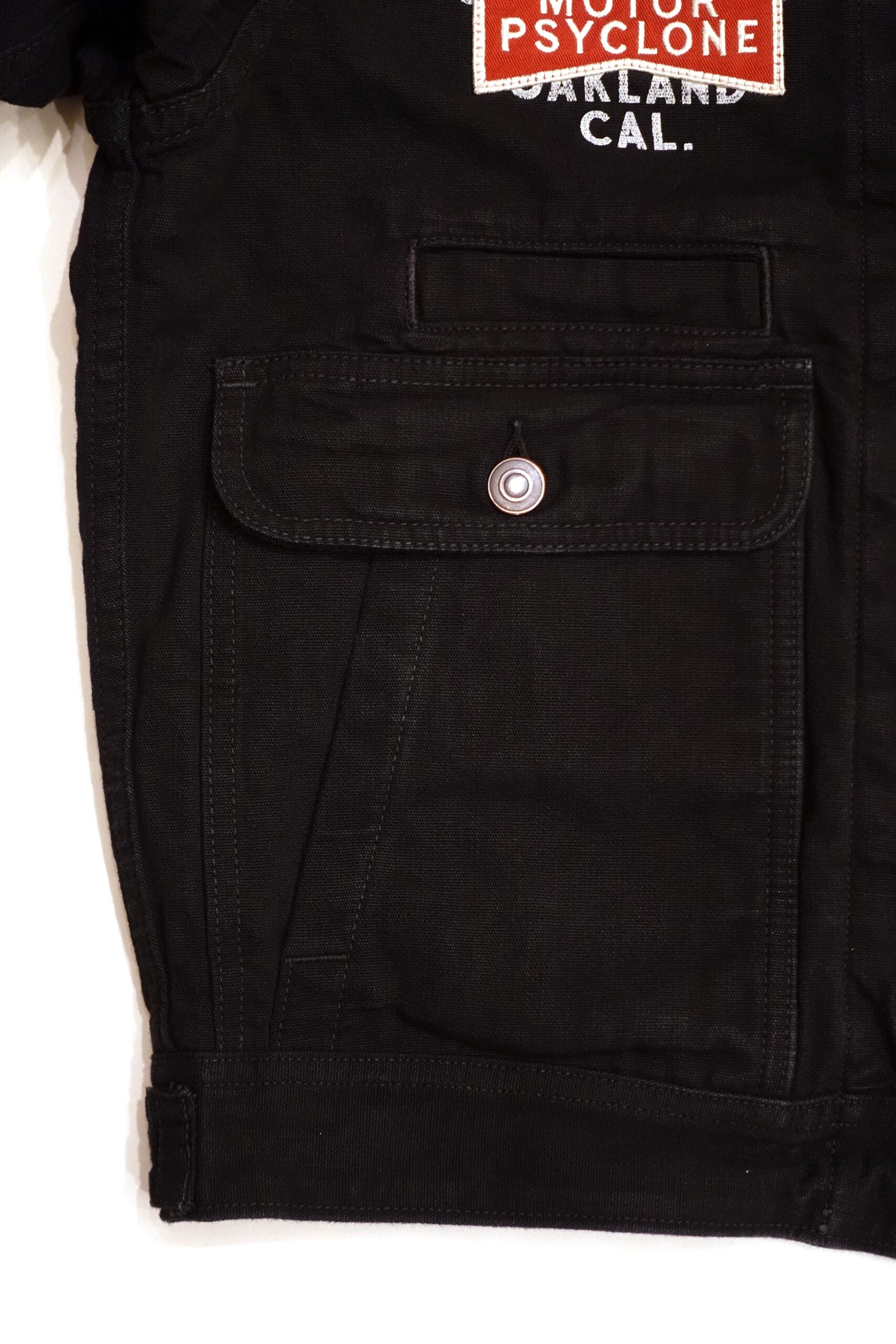 フロントにはMOTOR PSYCLONEのボウタイ型のワッペンが縫い付け、