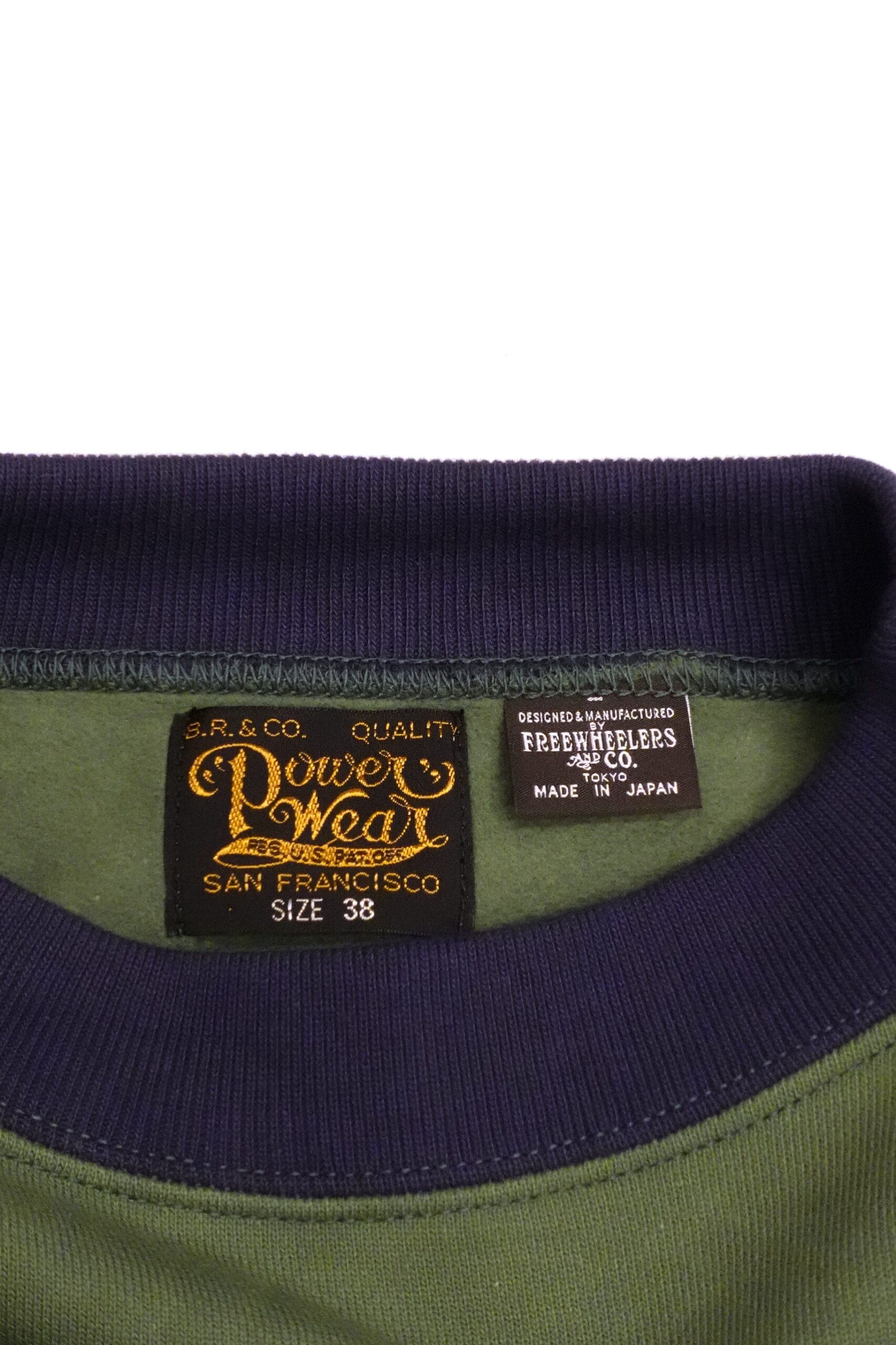 FREEWHEELERS(フリーホイーラーズ) "THE LURE WITH THE CLAW" RAGLAN SLEEVE SWEAT SHIRT #2534001 / YELLOW GREEN×OLD NAVY