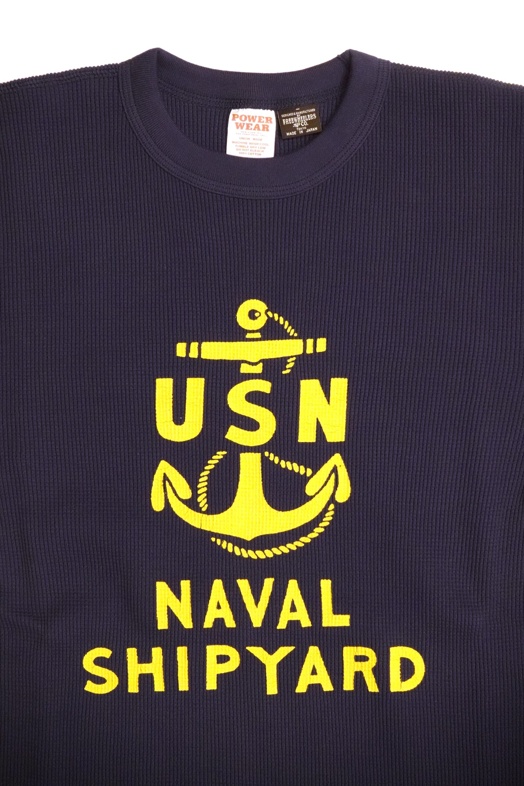 FREEWHEELERS(フリーホイーラーズ) "U.S.N. NAVAL SHIP YARD" CREW NECKED THERMAL LONG SLEEVE SHIRT #2535007 / DRY NAVY