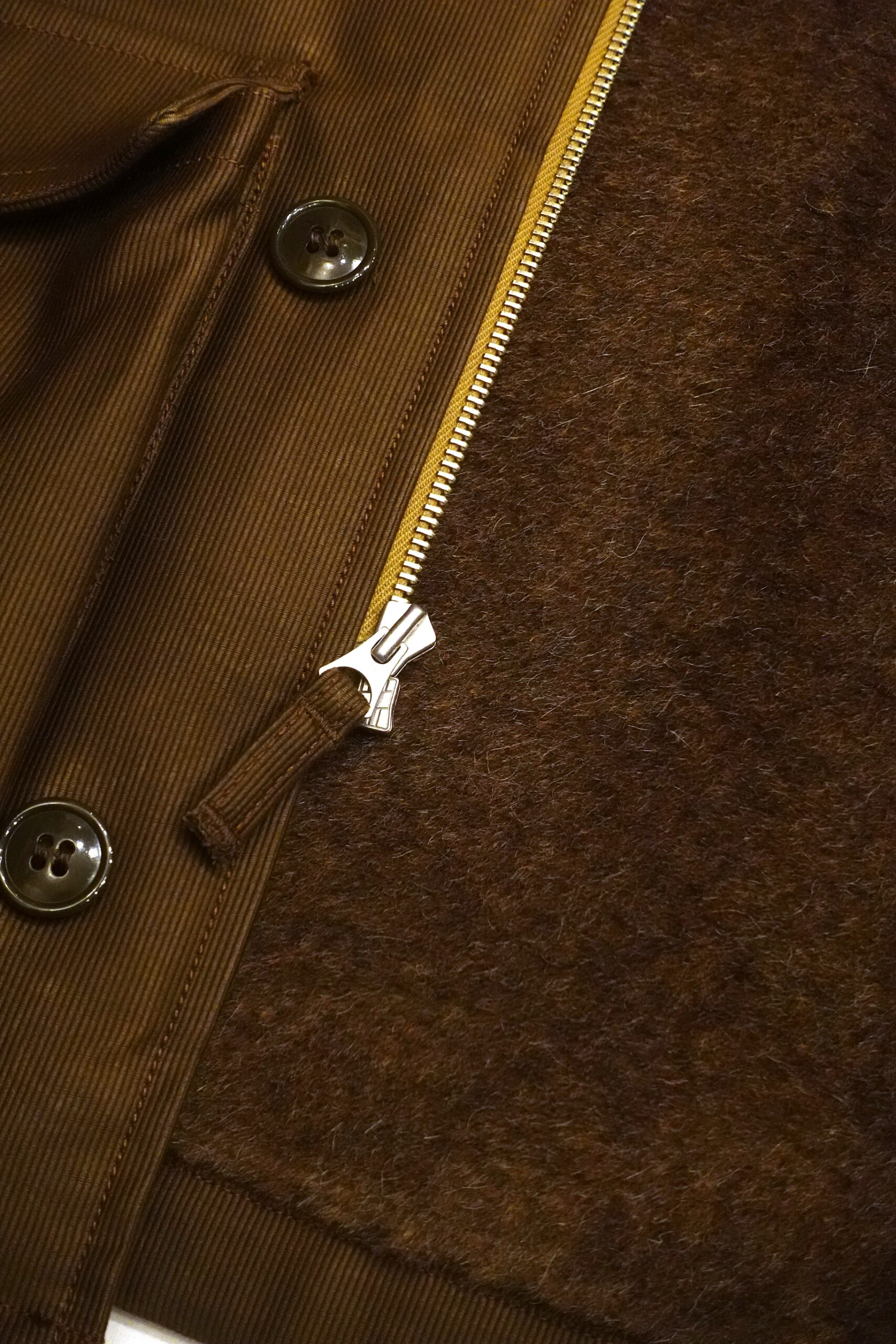 スタンドカラーの首元はアルパカで保温性を高めチンストが付きます。