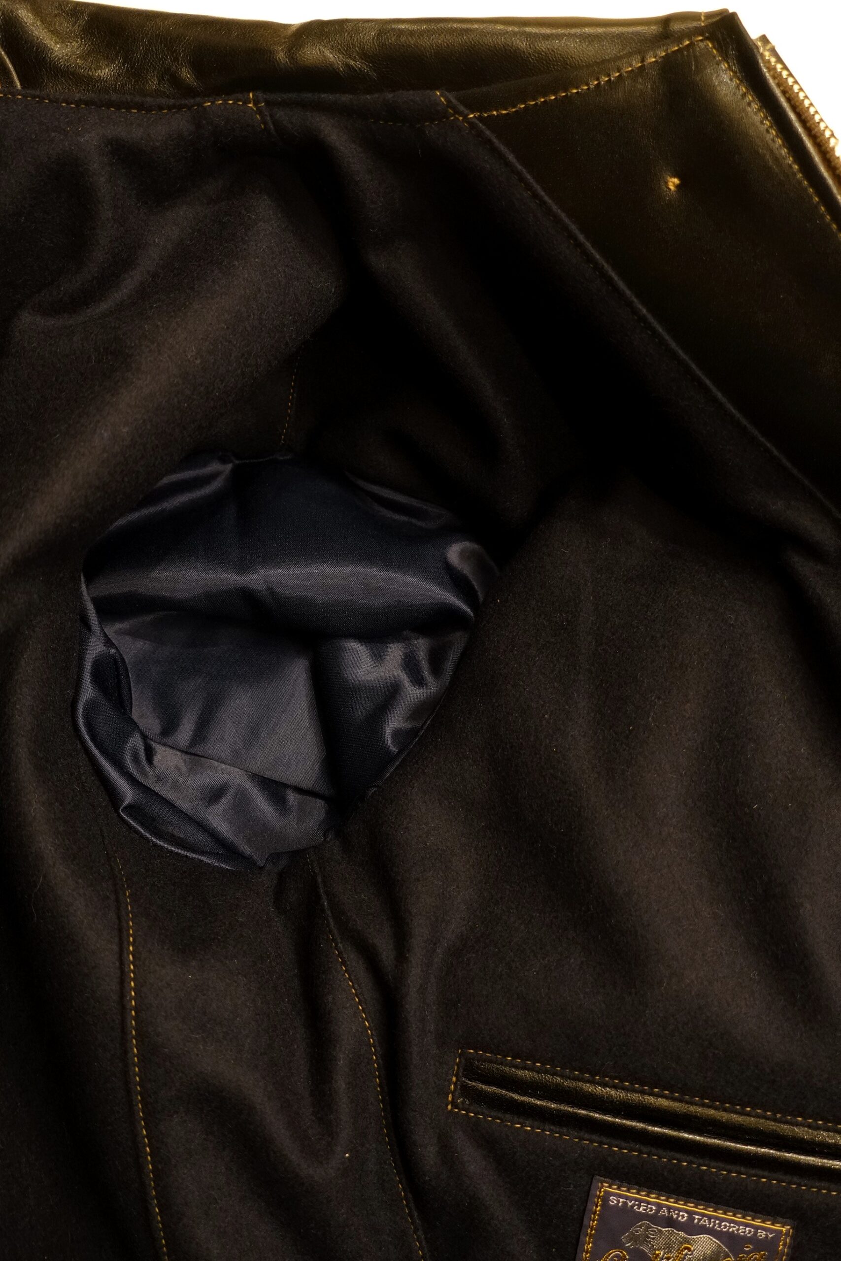 ライニング生地には身頃はウール素材のメルトン100%を使用し、