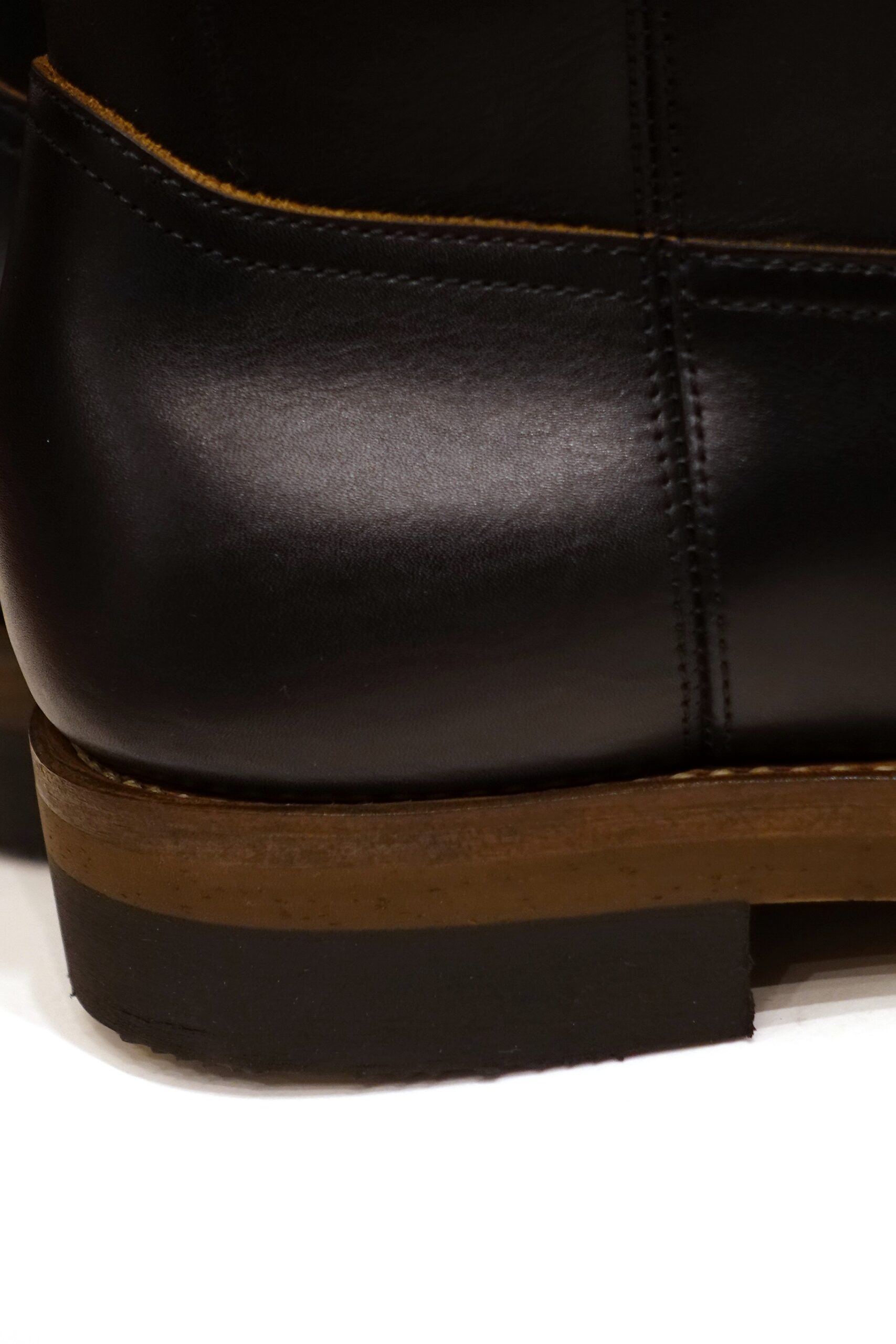 靴にした際に、あまり左右差のないシワが入るように設定し茶芯仕様で製作