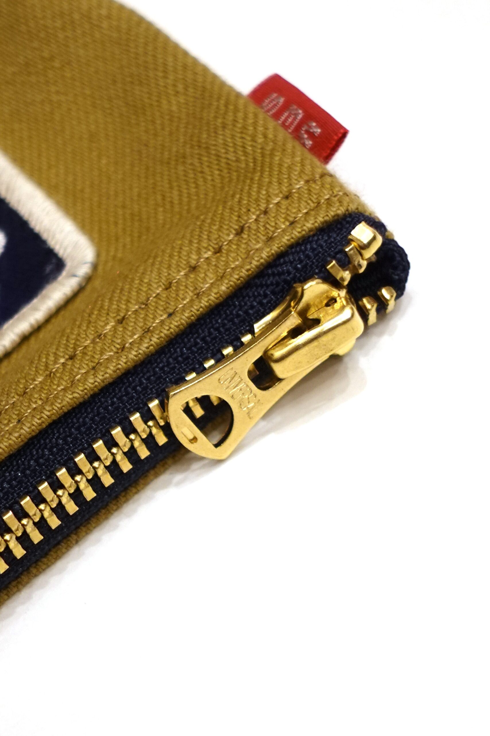 ビンテージタイプのファスナーを使用し、横位置にはUESのピスネームを取付